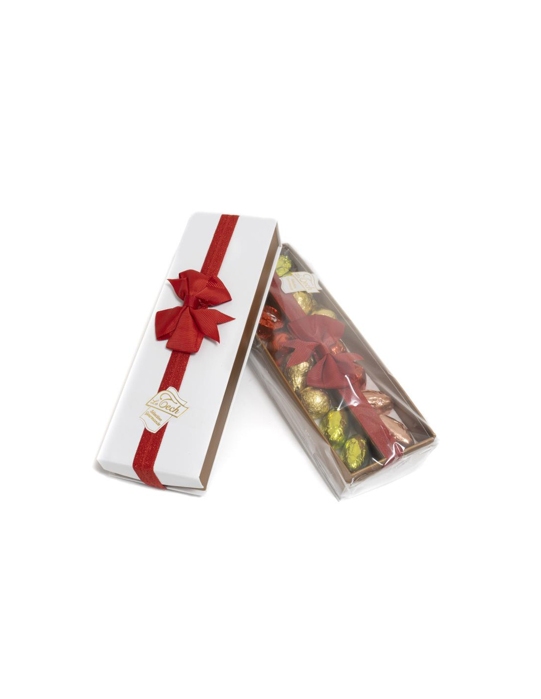 Pour les amateurs de liqueurs, retrouvez dans cette boite un assortiment de bonbons de chocolats fourrés à la liqueur de poire Williams, Chartreuse Verte, Cognac , et cerises à l'eau de vie de Kirsch.