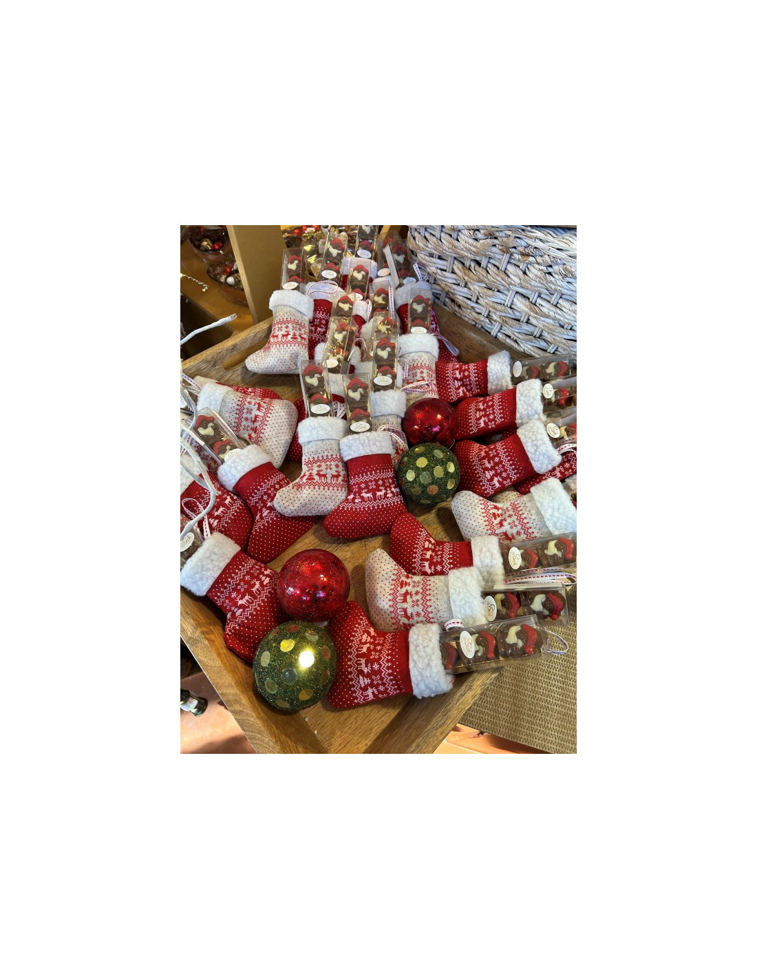 Petite botte de Noël contenant 4 mini figurines en chocolat ( 50g)
