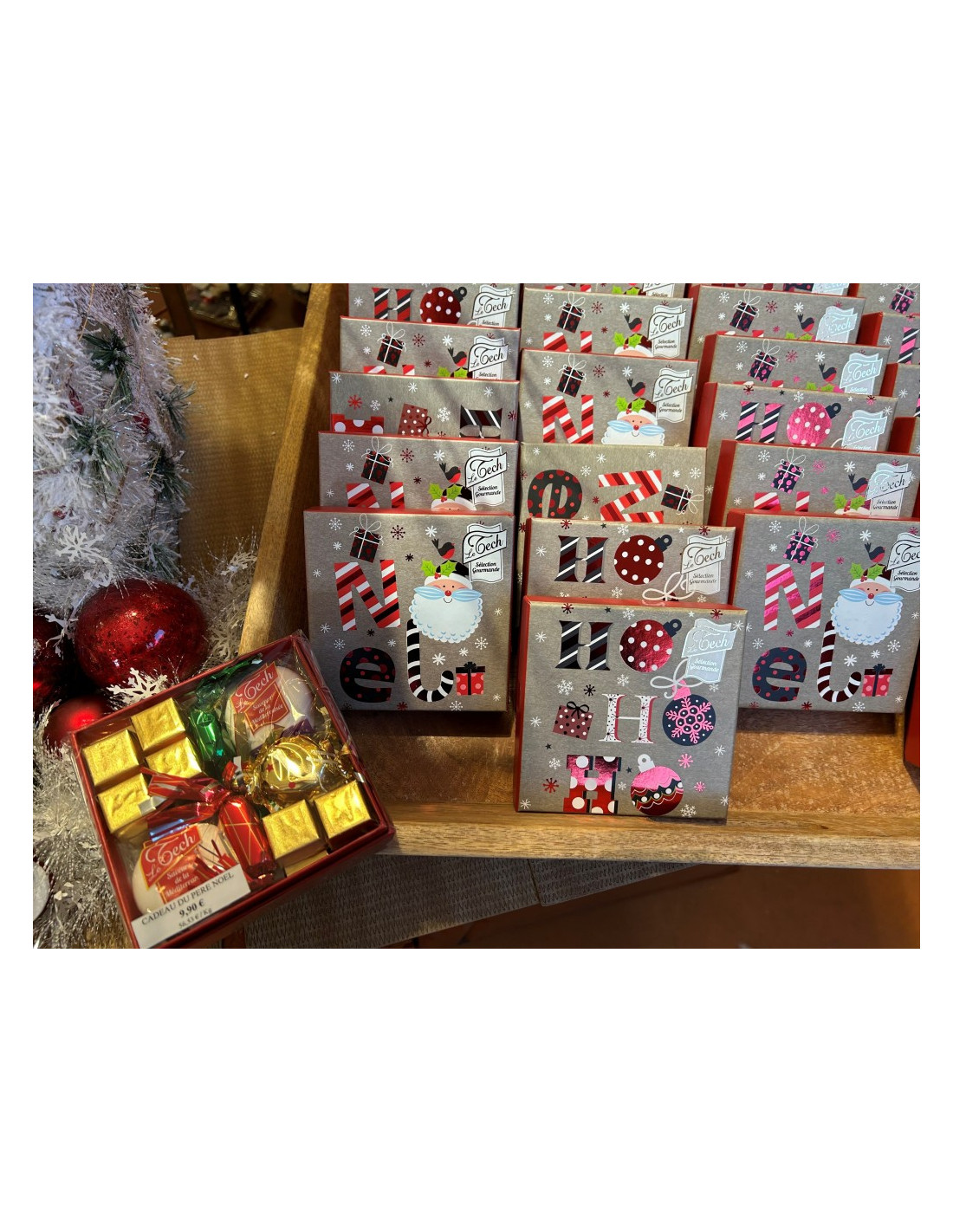 Petit coffret composé de: 12 carres or chocolat gianduja 4 papillotes 2 mini rousquilles