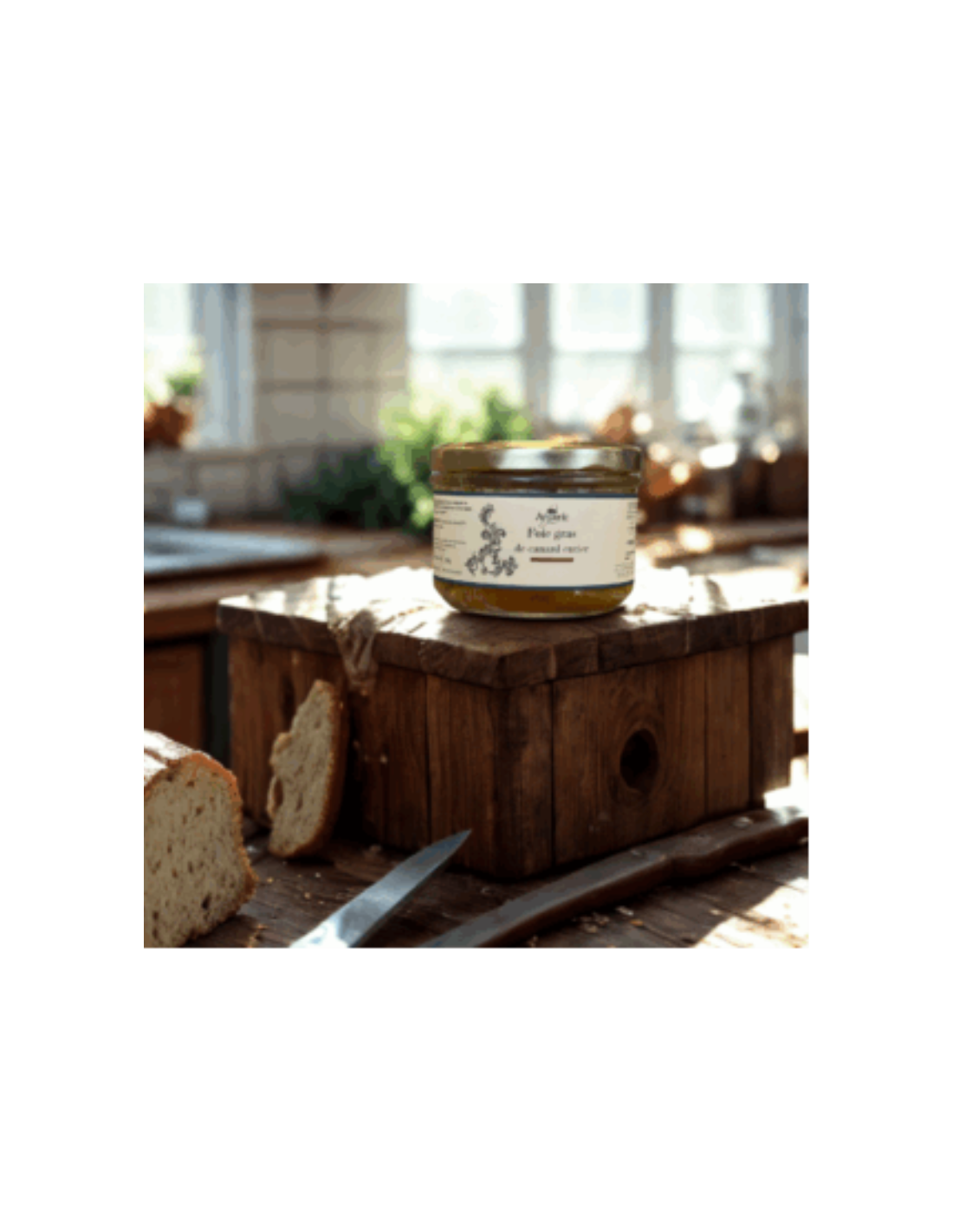Ingrédients : Foie gras de canard entier 98,5% (origine France), sel, poivre.