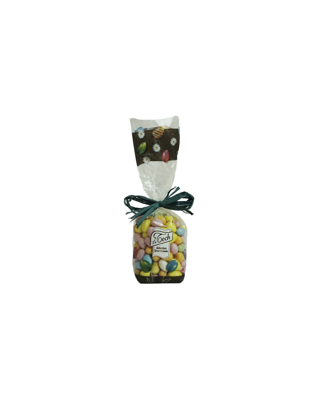 Sachet comprenant un assortiment de délicieux petit oeufs au sirop de sucre aromatisé et enrobé de sucre.