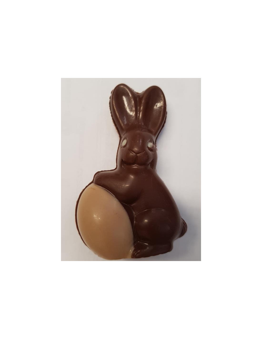 Petit lapin en chocolat au lait décoré de chocolat blanc