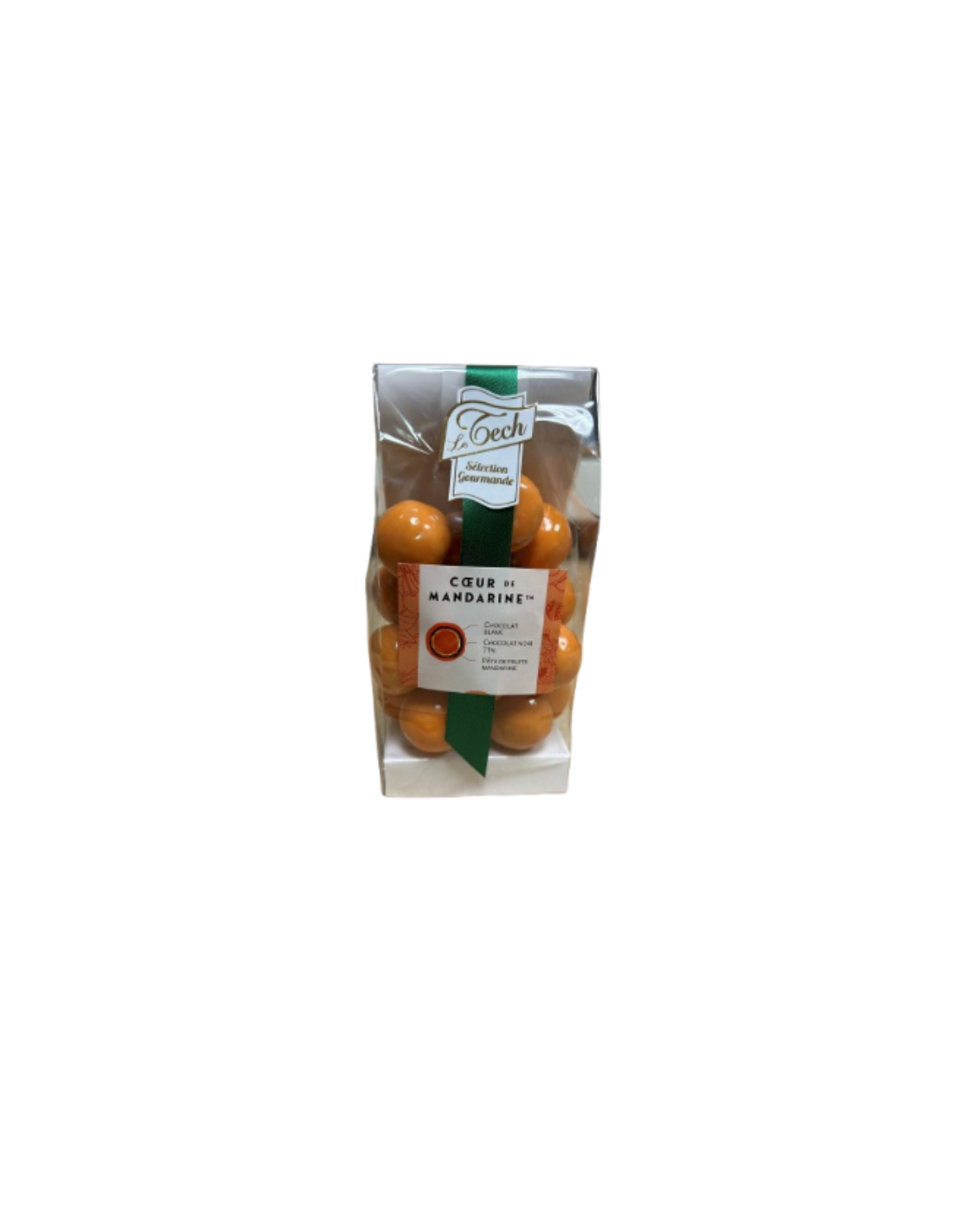 Coeur de pate de fruits mandarine enrobé de gianduja et de chocolat